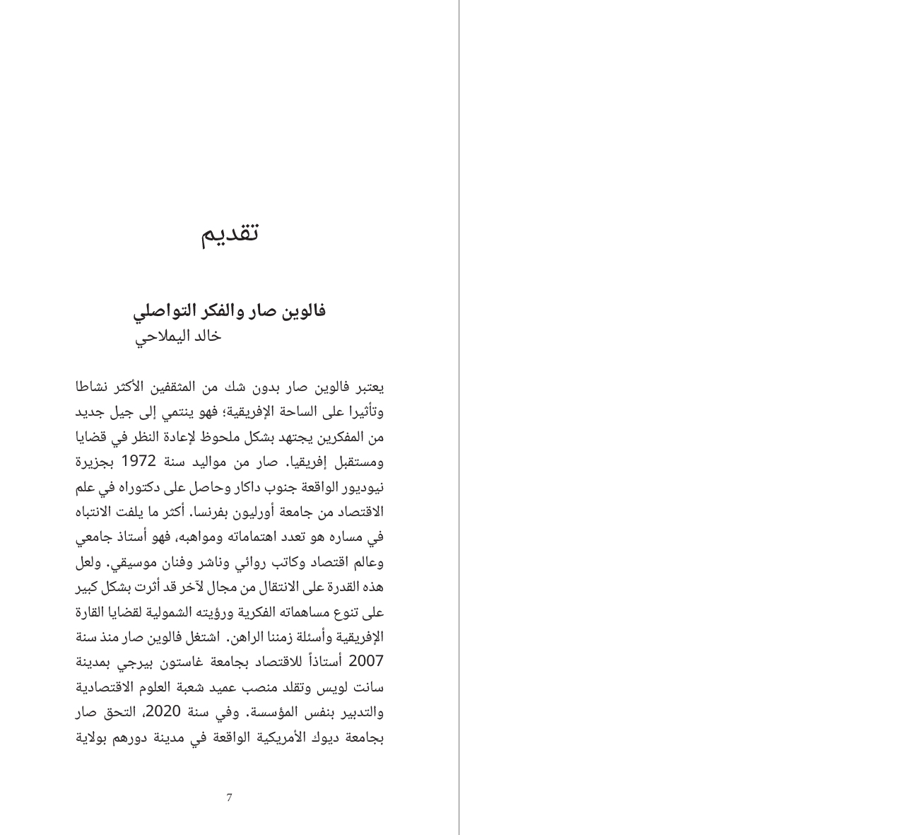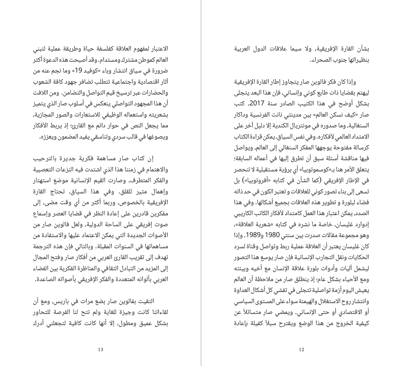 Un essai de politique relationnelle (l'édition arabe de l'ouvrage de Felwine Sarr).