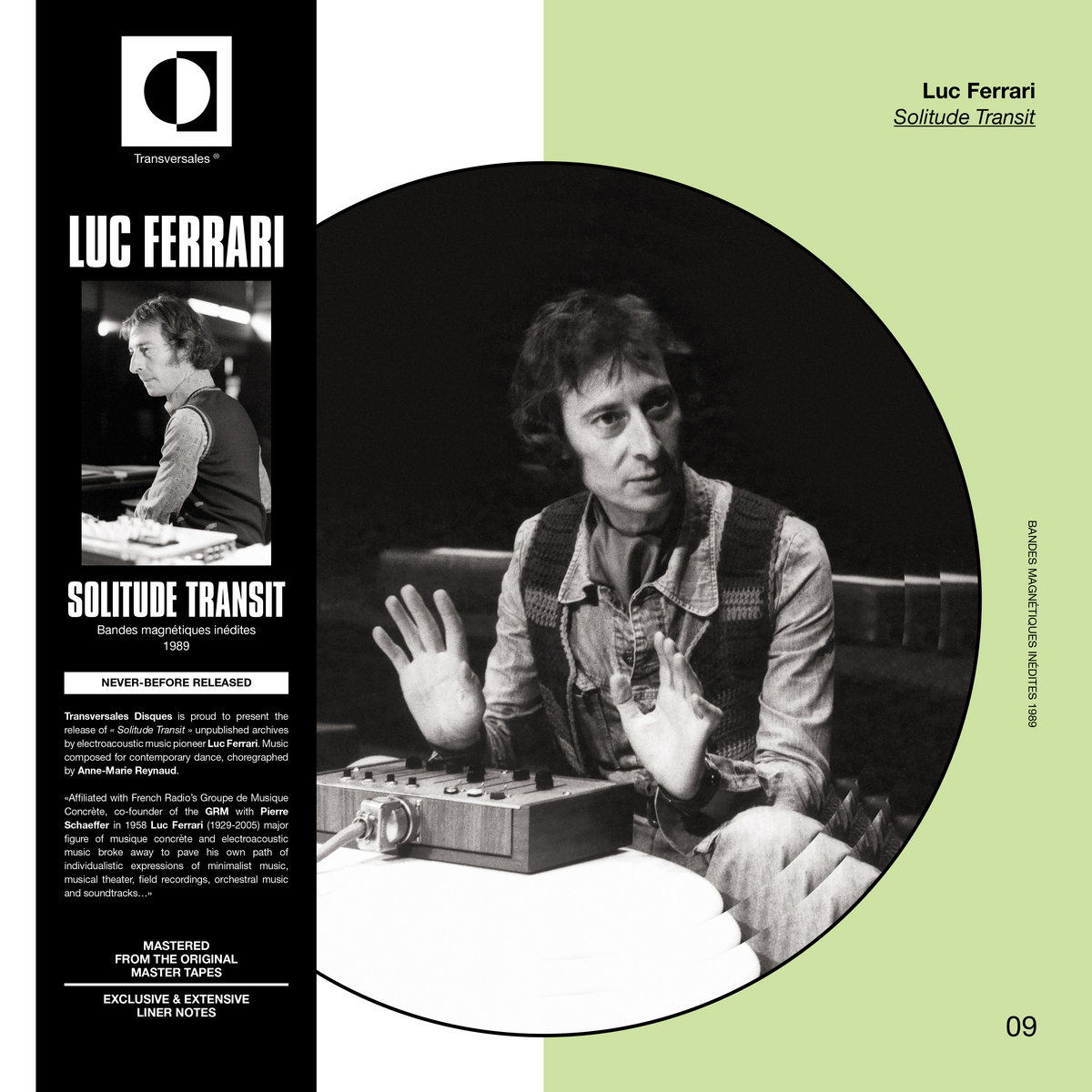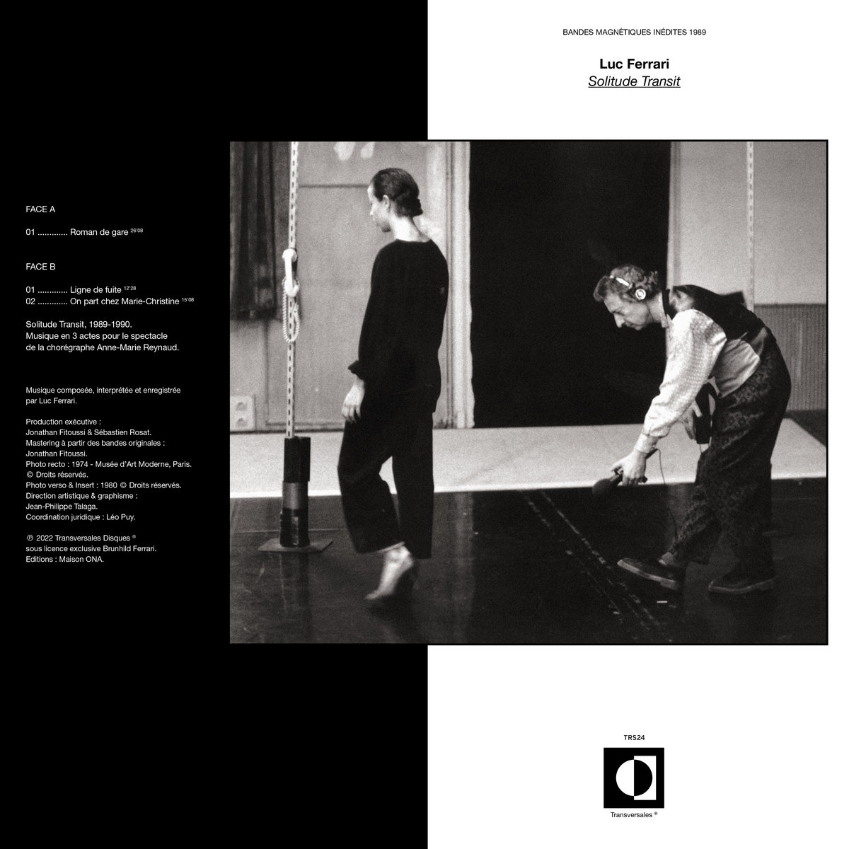Transversales Disques, qui développe un catalogue incroyable d'enregistrements d'archives inédits, revient avec l'une de ses réalisations les plus étonnantes à ce jour, une œuvre de Luc Ferrari composée pour accompagner une pièce de danse de Anne-Marie Reynaud, crée en étroite collaboration avec la chorégraphe. Intégrant un large éventail de sources sonores – enregistrements de terrain, synthèse et instrumentation acoustique –, cette œuvre intégralement captivante et très ambitieuse, plus de 30 ans après sa création, s'incrit comme un monument important dans la discographie de Luc Ferrari.