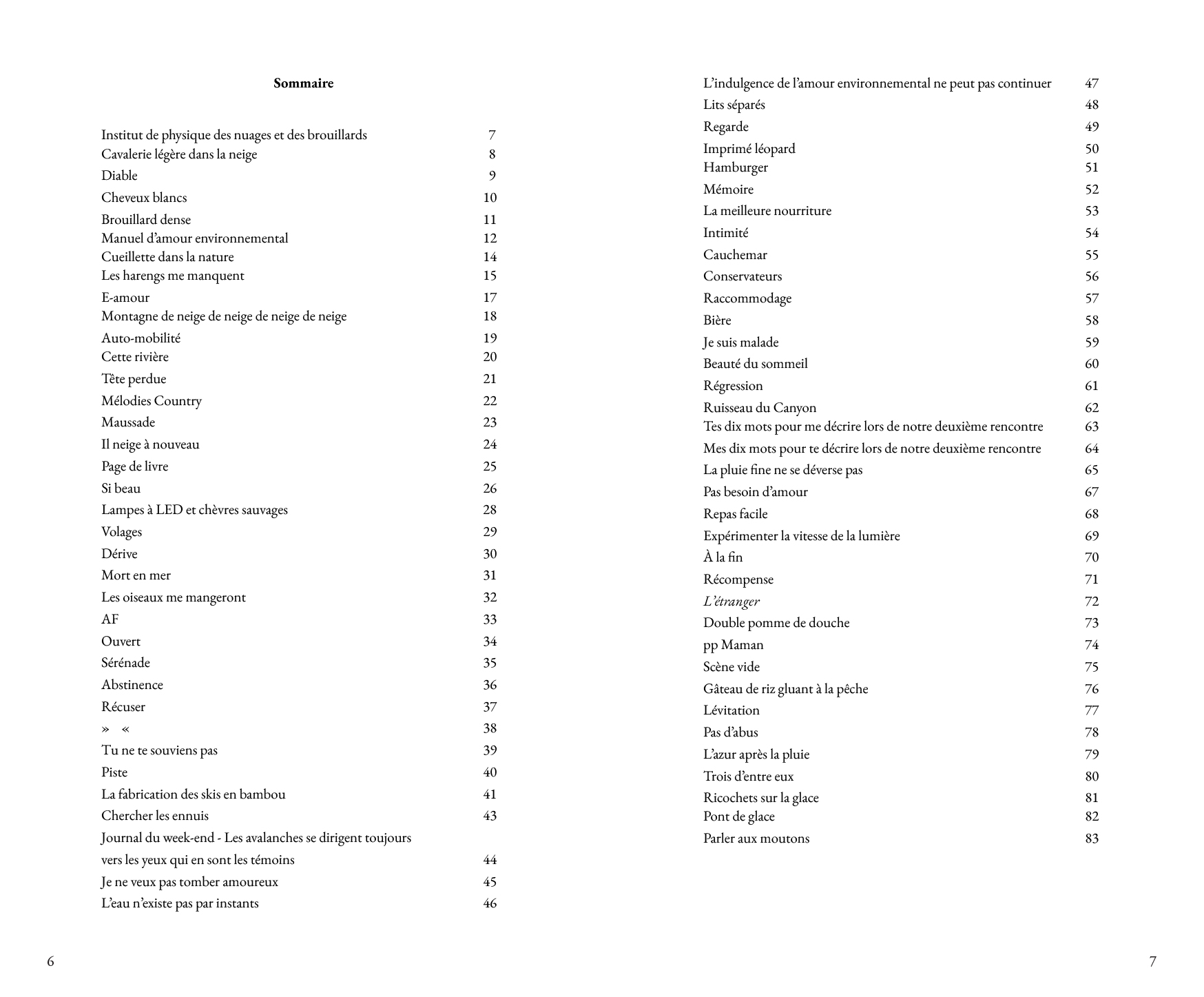 Écrit alors qu'il était confiné au Canada, ce Manuel d'amour environnemental est un recueil de poèmes traitant des paradoxes de la vie urbaine contemporaine dans ses relations avec la nature. Humoristiques, désespérés, mélancoliques, ces courts poèmes sont des divagations alliant au quotidien l'imagination, l'amusement et le désenchantement, virevoltant comme des chatons dans le ciel de juin.
