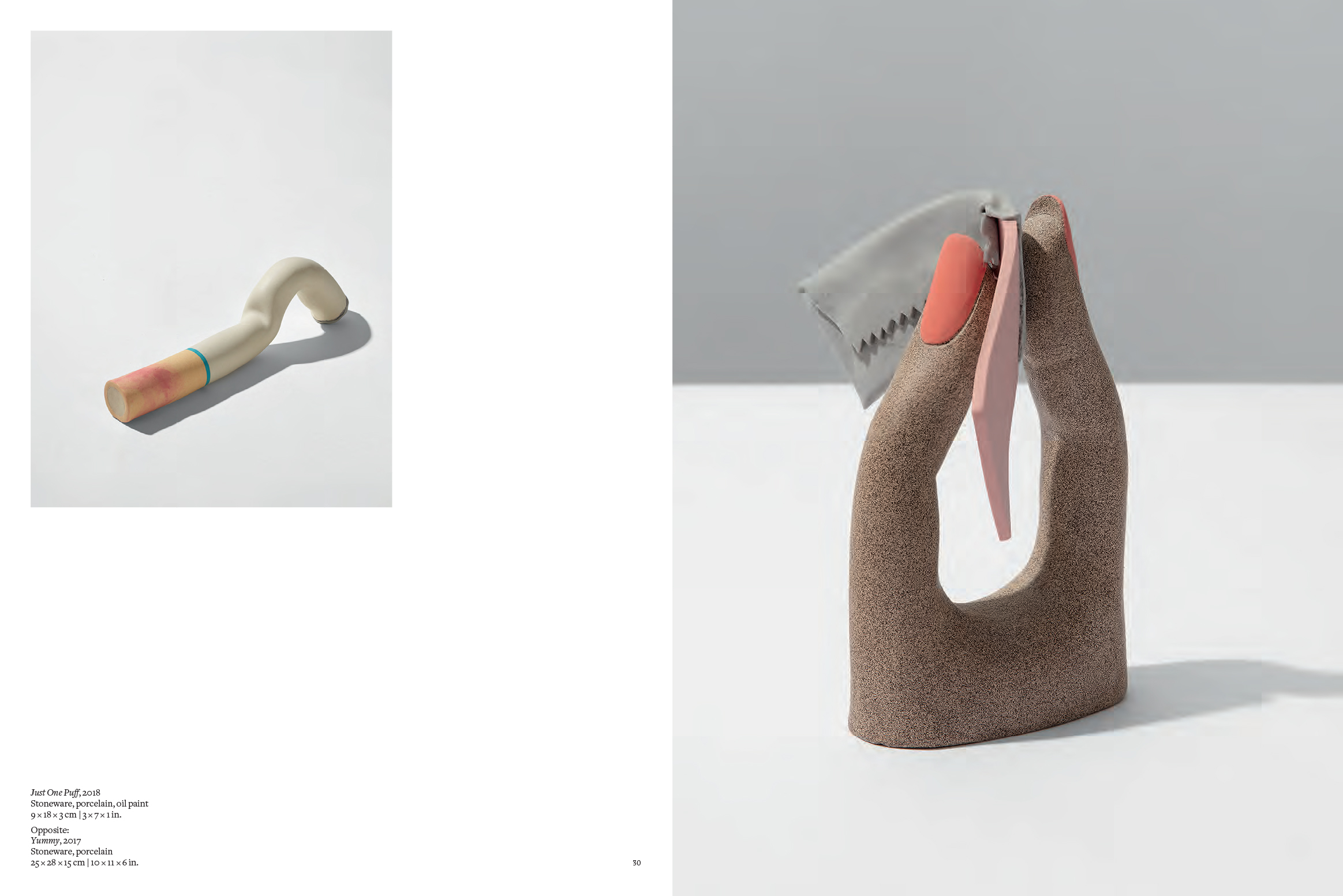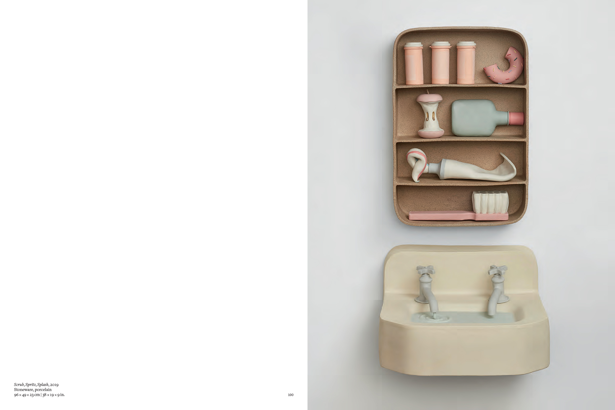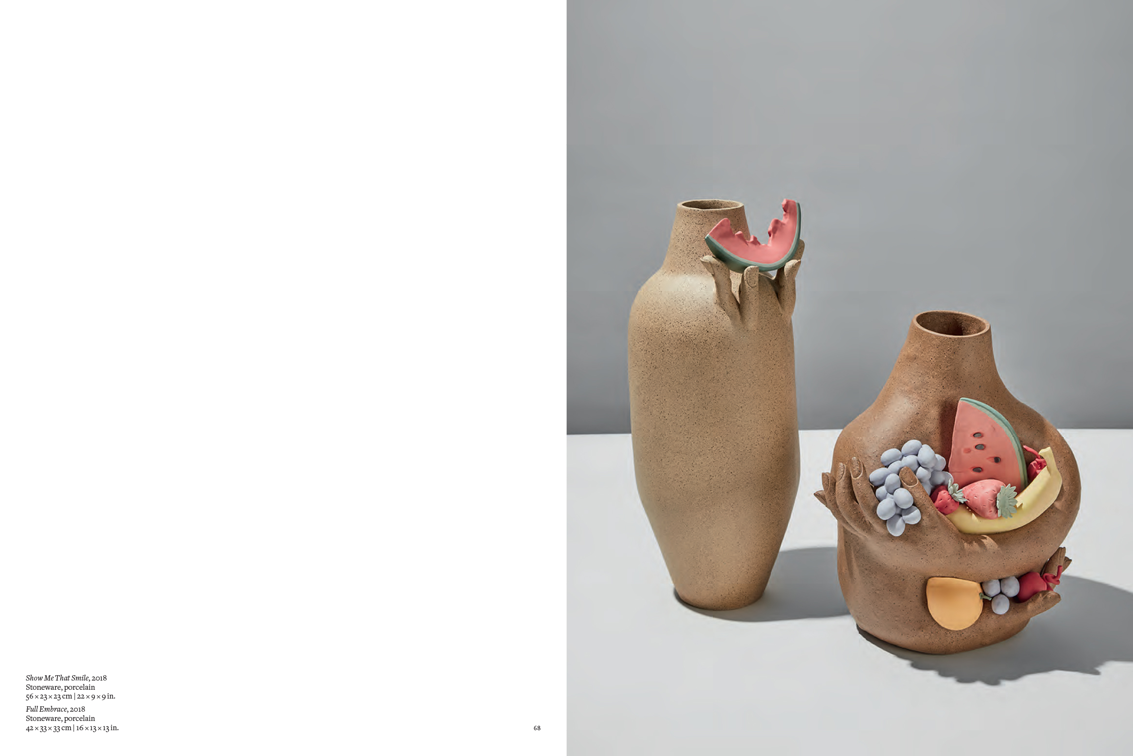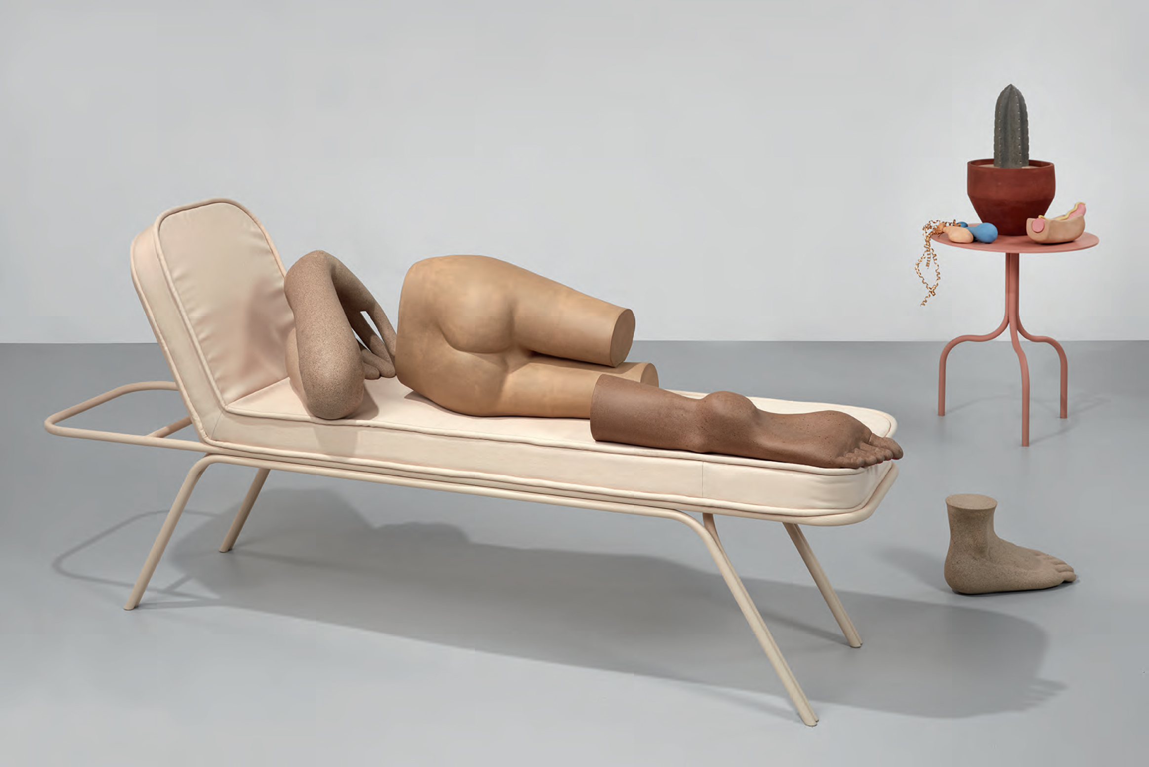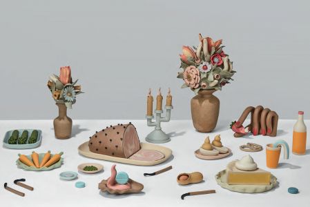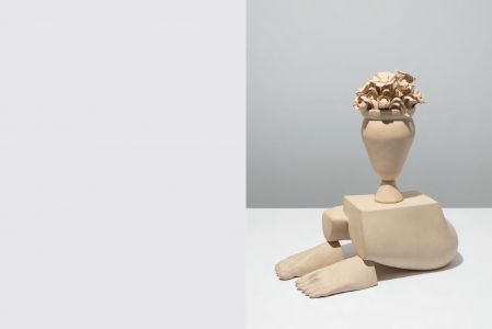 Le travail de Genesis Belanger (née en 1978 aux États-Unis) se caractérise par le traitement des objets comme substituts du corps. Sculptés en porcelaine et en béton et teintés de couleurs fondantes, les objets du quotidien prennent des traits humains, rendus inconfortablement familiers lorsqu'ils commencent à nous ressembler. Les natures mortes de Belanger – compositions de meubles, de fruits et de fleurs couvertes de signes et de symboles – sont de plus en plus contextualisées par leur environnement, des espaces psychologiquement chargés, créés par l'artiste. L'effet est inquiétant, faisant la distinction entre le confort et l'inquiétude, le beau et l'étrange.