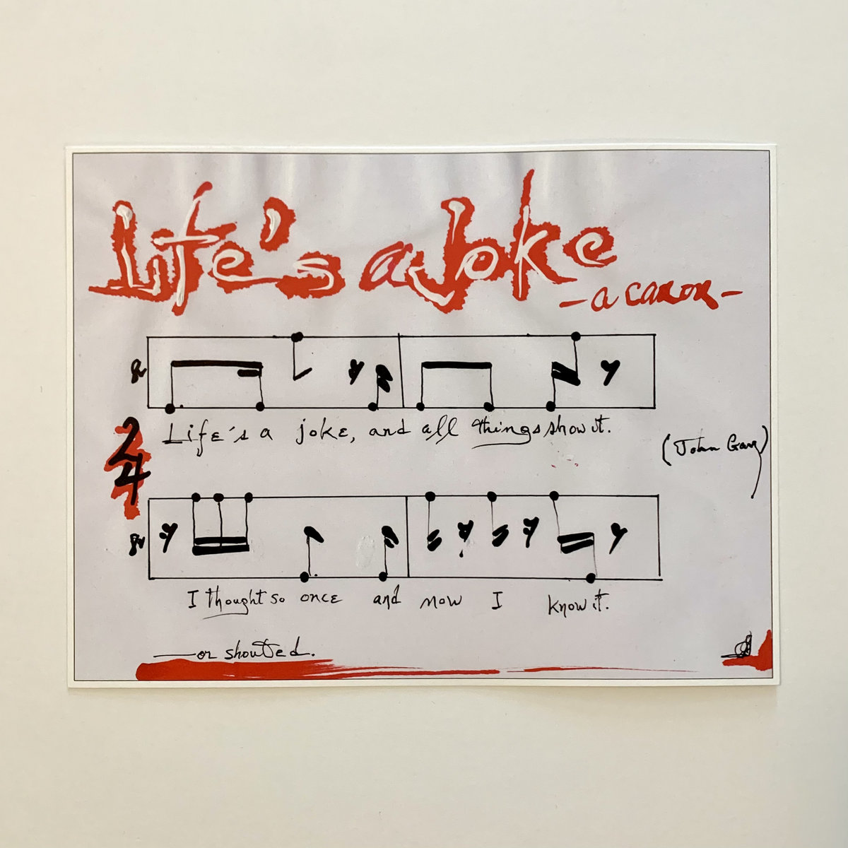 Une reproduction numérotée de la partition « Life's A Joke » est incluse, un morceau pour la voix qui invite le lecteur à chanter (ou à crier) « LIFE'S A JOKE AND ALL THINGS SHOW IT, I THOUGHT SO ONCE AND NOW I KNOW IT ».
