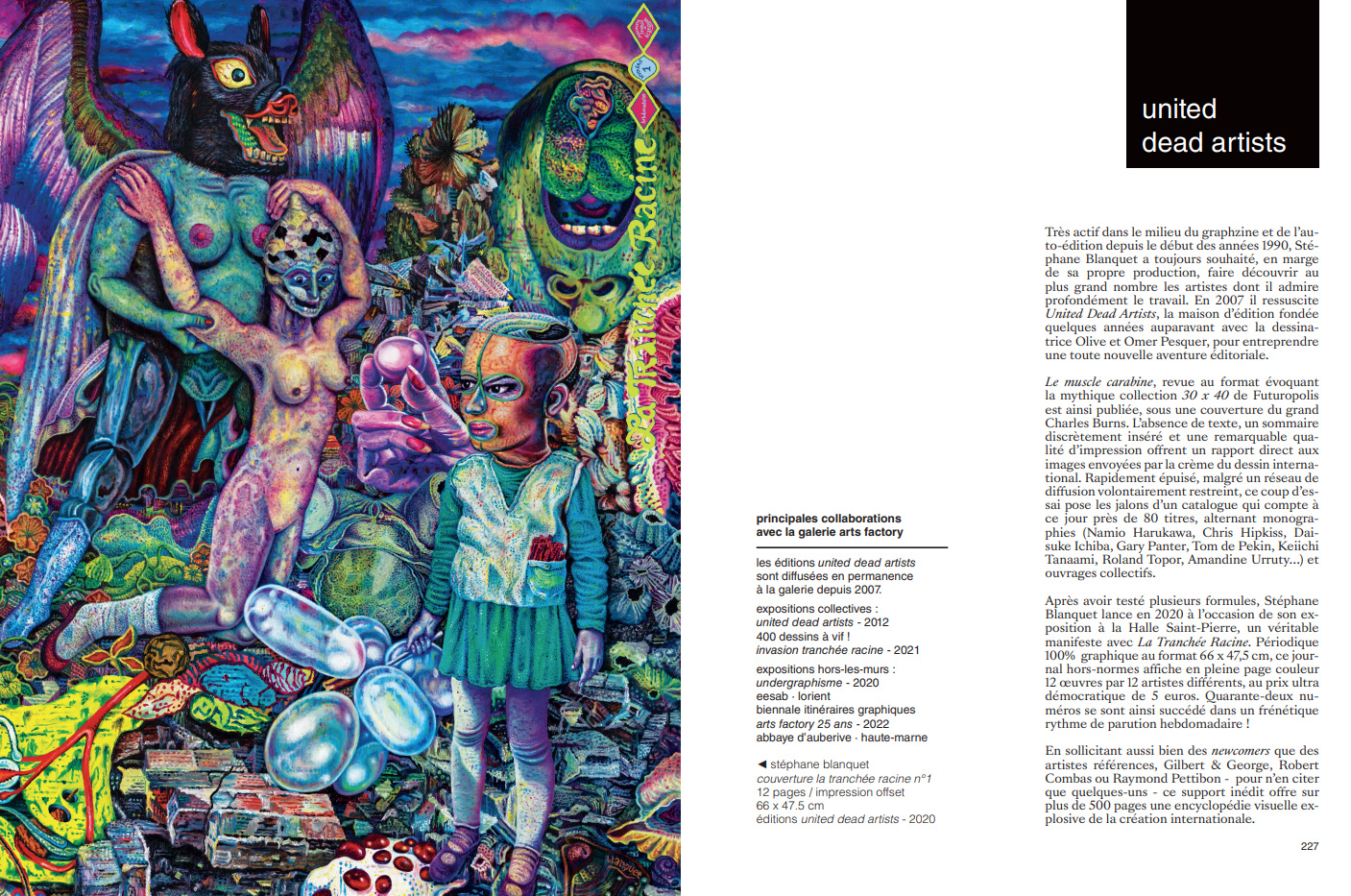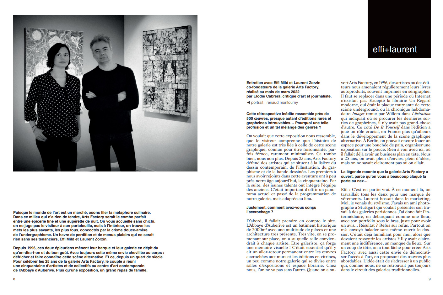dessin, de la bande dessinée et de l'illustration. Réalisé en étroite collaboration avec ses fondateurs, Effi Mild et Laurent Zorzin, ce livre revient sur un projet de vie et une passion commune. Fidèles à leurs choix souvent précurseurs, les deux galeristes dévoilent au fil des pages une direction artistique très personnelle ; généreuse, inspirante, parfois déstabilisante, mais toujours accessible au plus grand nombre…