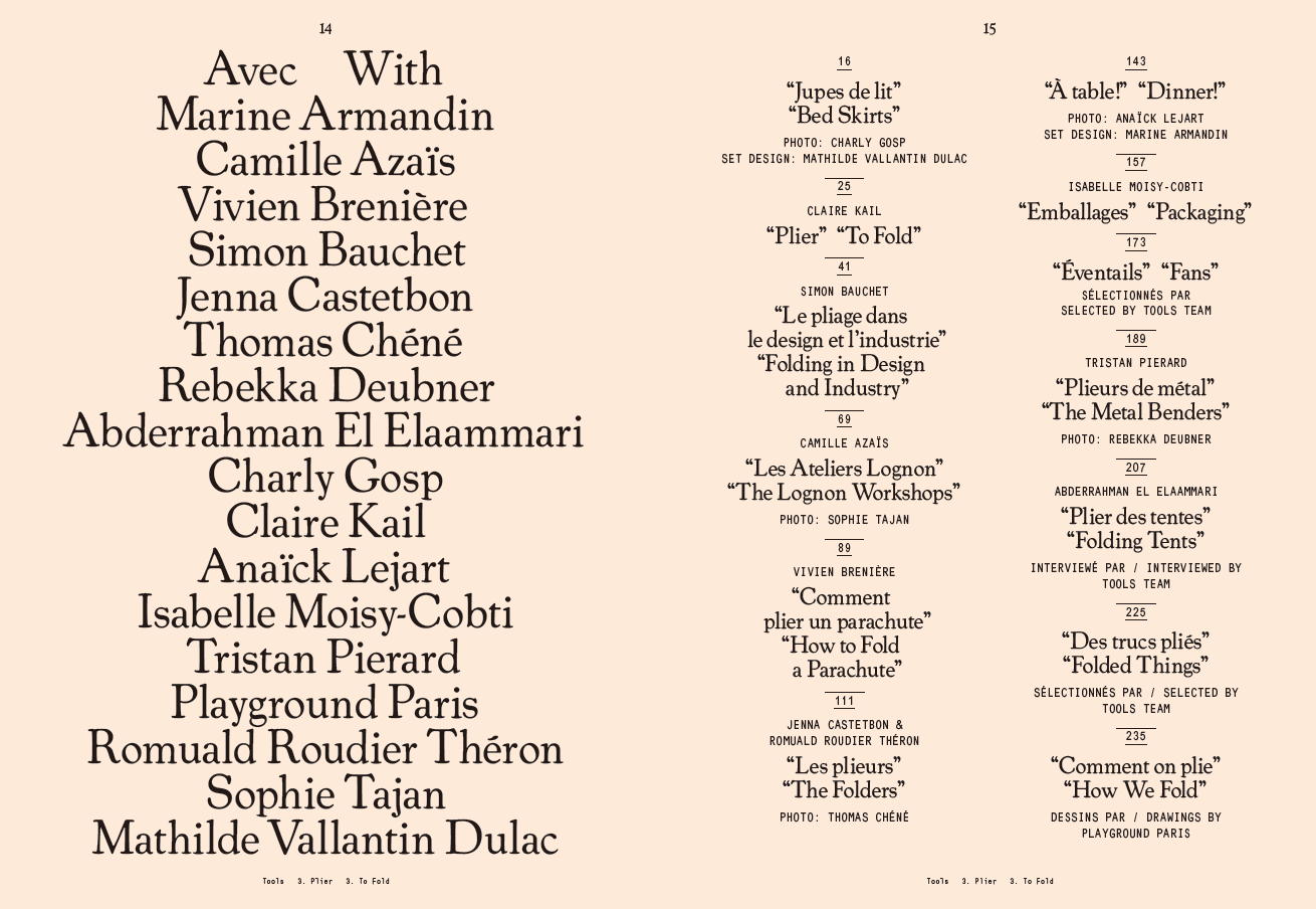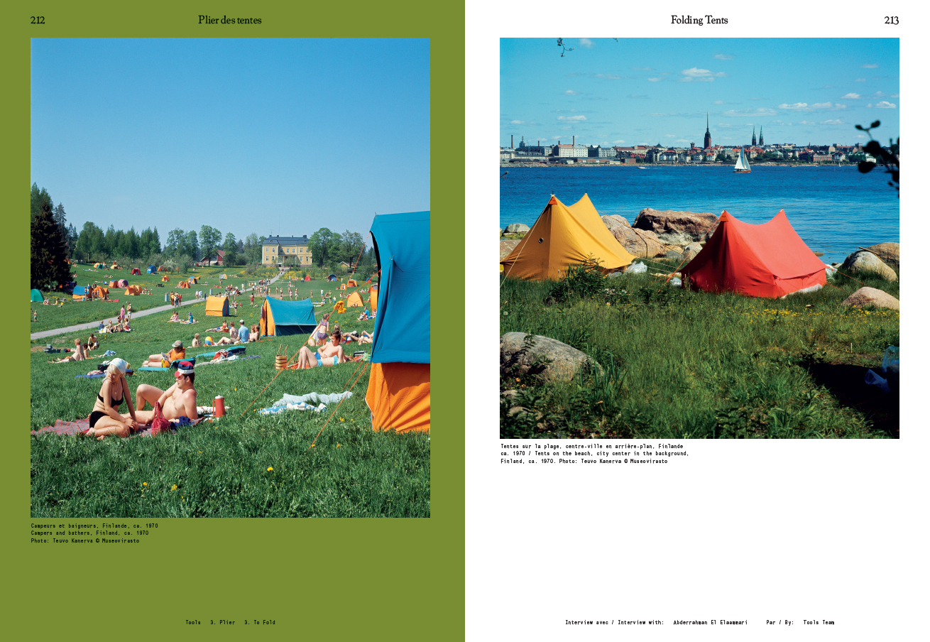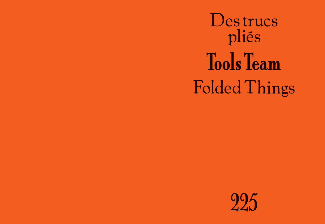 Au fur et à mesure de la construction de ce numéro 3, on s'est donc rendu compte que plier, parfois veut dire cadrer : prendre le pli, rentrer dans le cadre… On dit bien « se plier aux règles ». C'est peut-être le numéro de Tools où le lecteur ou la lectrice rencontrera le plus de militaires ! En effet, l'invention de nouveaux matériaux pliés, cintrés ou ondulés ont parfois appuyé des logiques de camps temporaires, d'infrastructures d'urgences.