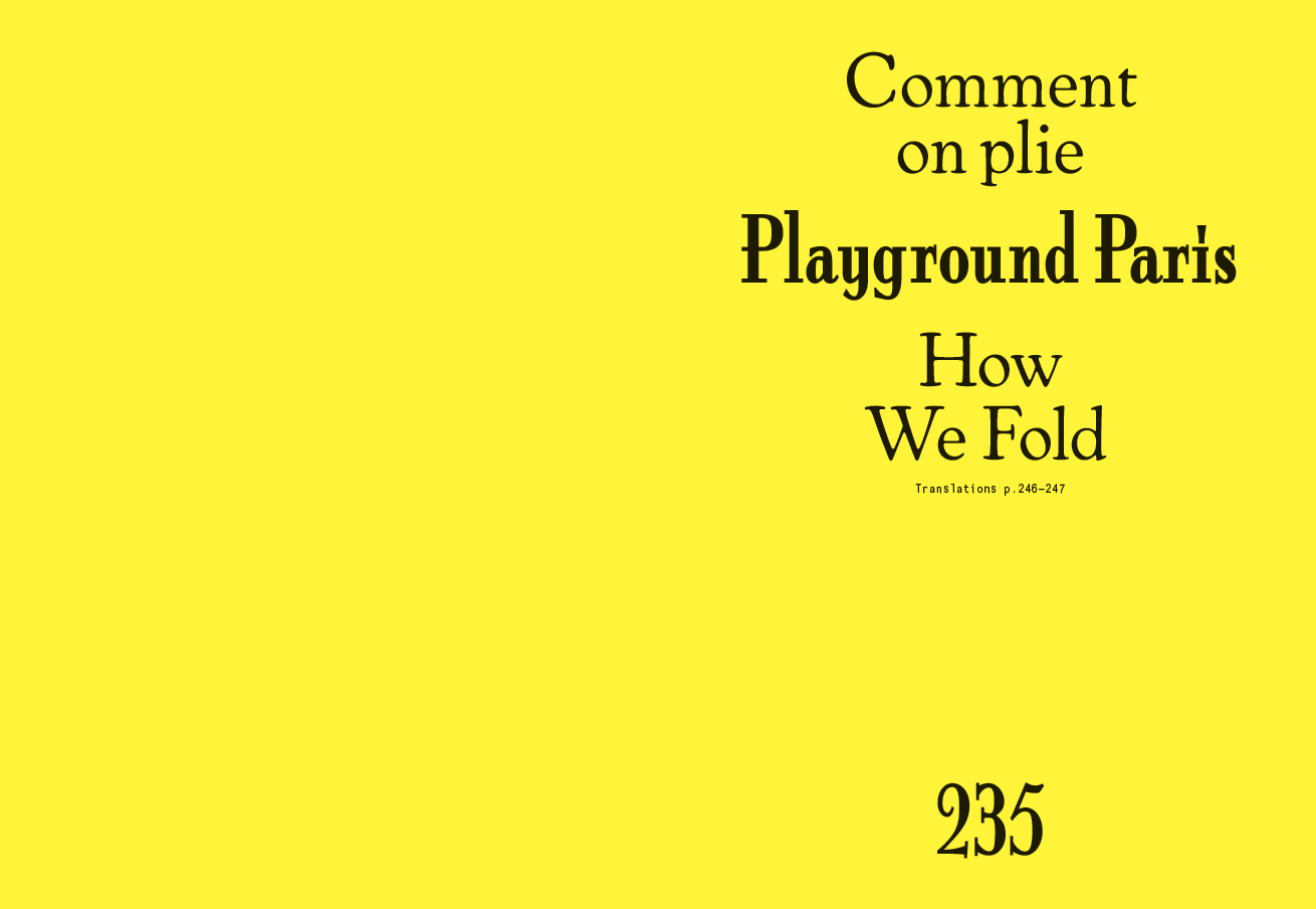 Contributions de Marine Armandin, Camille Azaïs, Vivien Brenière, Simon Bauchet, Jenna Castetbon, Thomas Chéné, Rebekka Deubner, Abderrahman El Elaammari, Charly Gosp, Claire Kail, Anaïck Lejart, Isabelle Moisy-Cobti, Tristan Pierard, Playground Paris, Romuald Roudier Théron, Sophie Tajan, Mathilde Vallantin Dulac.