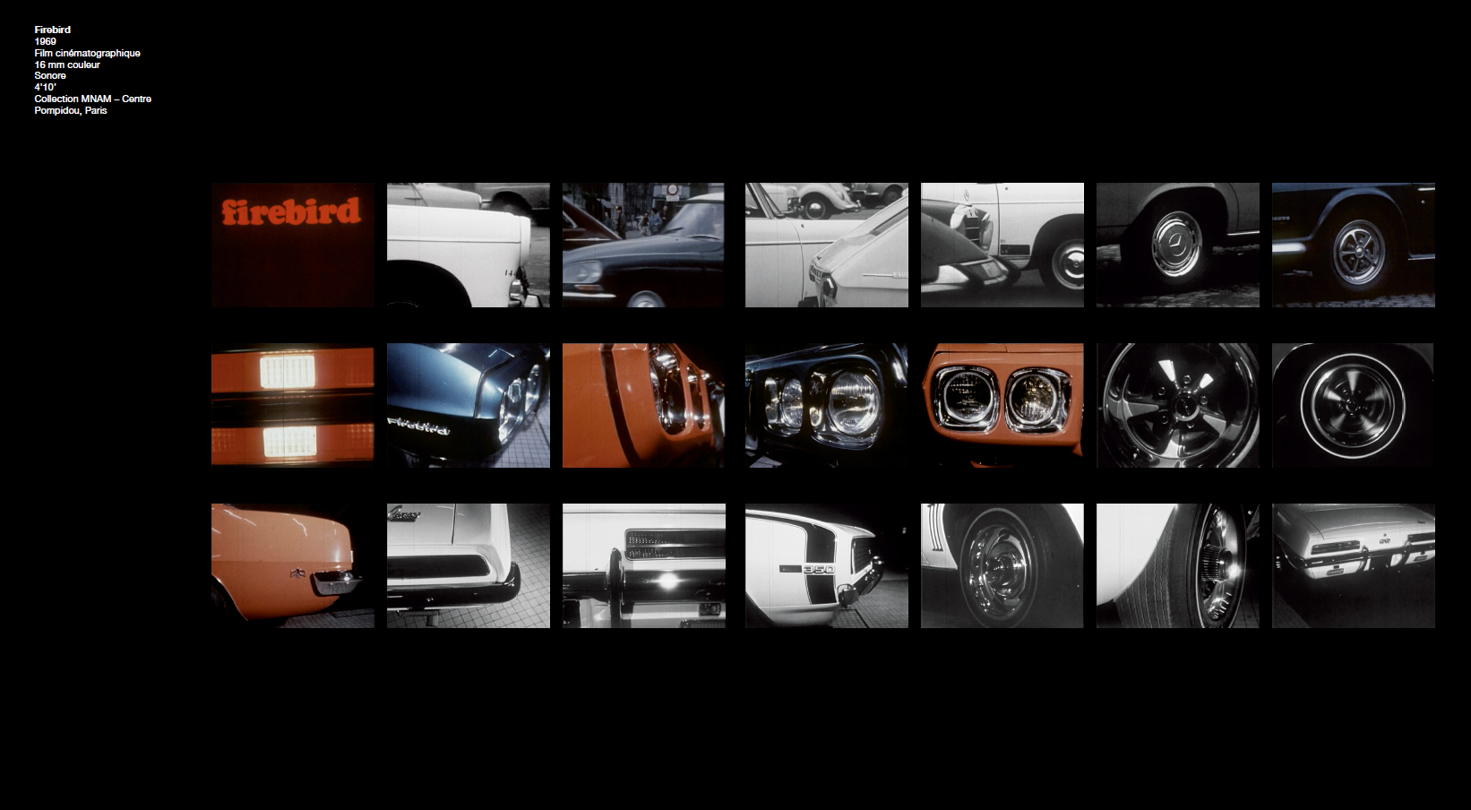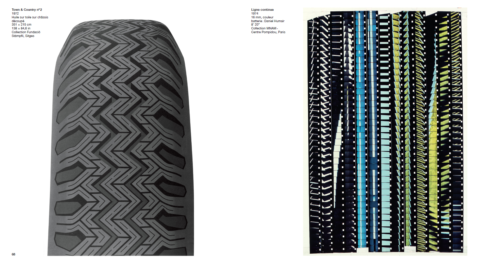 automobile, qu'il approfondit et fragmente. Sa démarche aboutit à la représentation du pneu qu'il libère de son environnement pour ne garder que l'empreinte géométrique épurée et déclinée sur différents supports.
