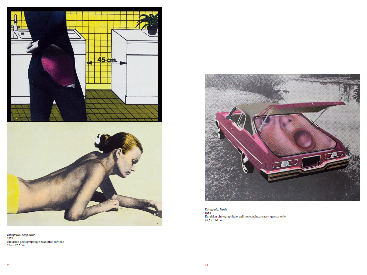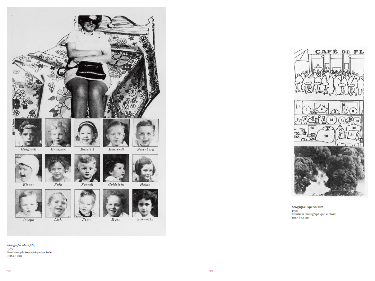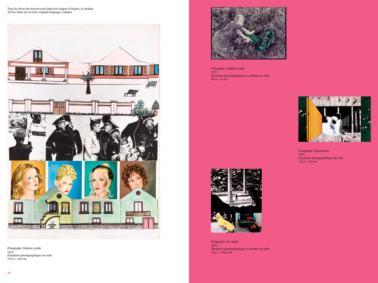Le titre Etnografia, renvoie à une étude de terrain des modes de vie, des mœurs et de la culture d'une société donnée. Sur une période de deux années, entre 1972 et 1974, Eulàlia Grau propose de passer au crible la société espagnole d'un point de vue situé : celui d'une jeune femme catalane privée de ses droits fondamentaux, féministe, marxiste. […] Il est important de noter qu'Eulàlia Grau explore aussi bien les assignations faites aux femmes, que celles faites aux hommes dont les rôles se résument à être des footballeurs, des bodybuilders, des amateurs automobiles, des hommes d'affaires, des militaires, des dictateurs ou encore des gangsters.[…] Les œuvres engagent alors à une prise de conscience, à une révolution totale, à une déconstruction des dominations systémiques en Espagne et partout ailleurs. Le contexte artistique des années 1960-1970, largement in"uencé par le Pop Art et les bouleversements aussi bien géopolitiques que sociétaux, a amené les historien.nes de l'art à ranger Eulàlia Grau dans la maison du Pop Art. Pourtant, […] elle se reconnaît et s'identi!e davantage à l'héritage dadaïste qui a participé à une remise en cause plastique et politique des systèmes de dominations qui agissent dans toutes les sociétés. […] Ses œuvres s'inscrivent dans un mouvement artistique international régi par une urgence de la contestation, de la désobéissance et de l'opposition radicale.. »
