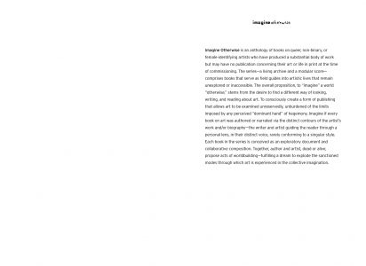 Imagine/otherwise est une collection de biographies critiques d'artistes femmes, queer ou non binaires, qui ont produit un corpus substantiel d'œuvres mais dont le travail ou la vie n'ont pas nécessairement fait l'objet de publications. Editée par Omar Kholeif (avec un comité éditorial incluant Skye Arundhati Thomas, Zoe Butt, Carla Chammas, Alison Hearst et Sarah Perks), la série met l'accent sur la notion de « monde féminin » avec des livres qui servent de guides de terrain dans des vies artistiques précédemment inexplorées, négligées ou inaccessibles. La proposition générale de la série (« imaginer » un monde « autrement ») découle du désir de trouver une autre façon d'écrire sur l'art et de le lire, affranchie des limites imposées par les dominations hégémoniques.